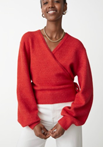 This wrap cardigan is so lovely. Wear a red lip and you have yourself a fiery look.