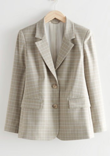 I love this blazer. Break up the neutral tones of this blazer with a pop of green or blue. Every wardrobe needs a neutral check print/plaid blazer.