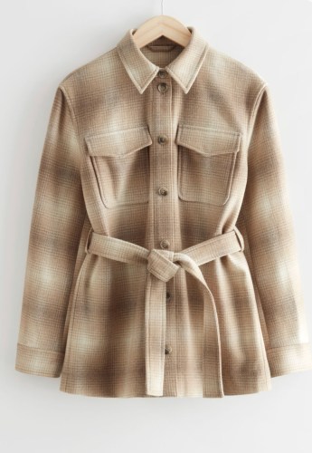 This shacket can be worn dressed up or down. You can even wear it with the skirt above with some chunky boots.