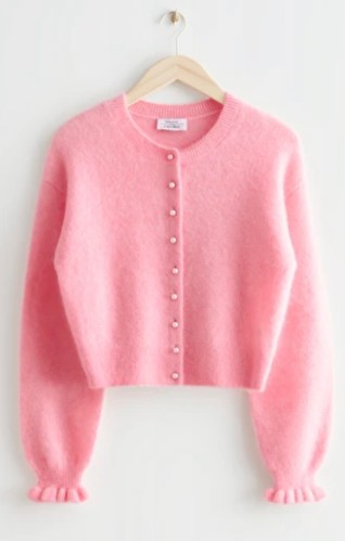 Pink can also be worn in the Fall/Winter season. It’s so girly and light. The frilly detail on the cuff just takes it up a notch from your normal, boring cardigan.